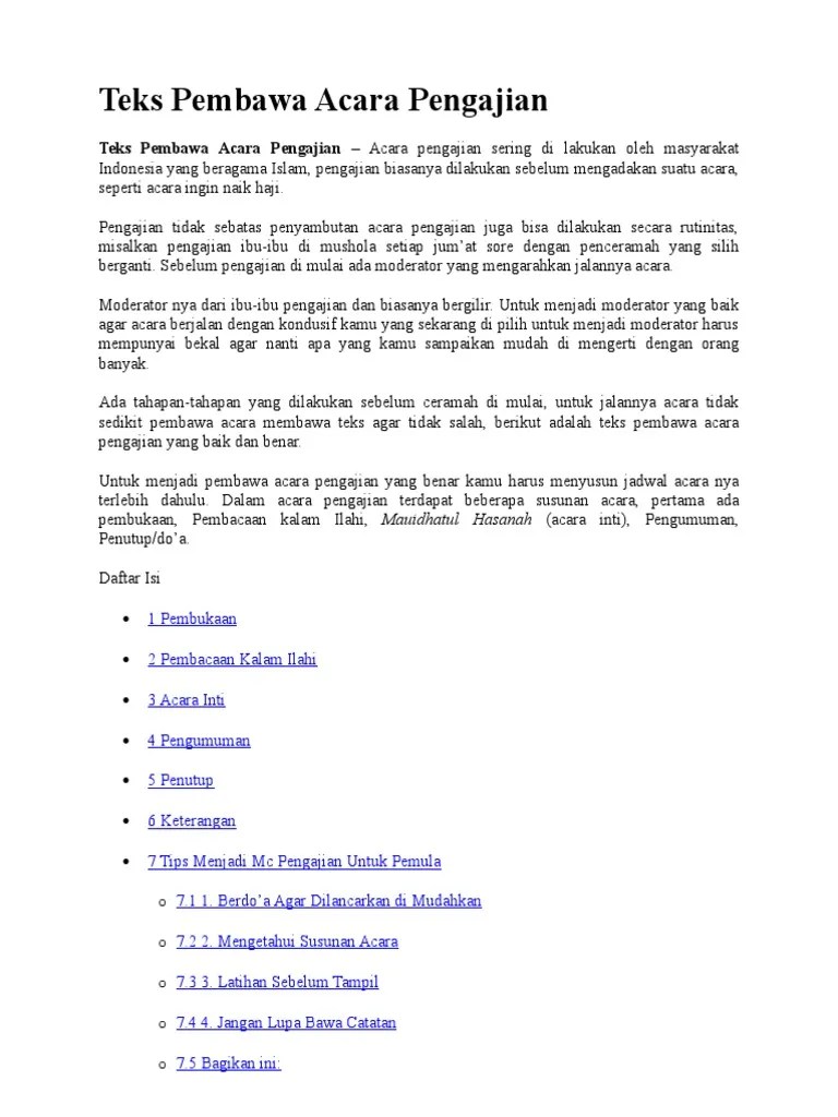 Teks pembawa acara pengajian terbaru. We did not find results for: Maybe you would like to learn more about one of these? Check spelling or type a new query.