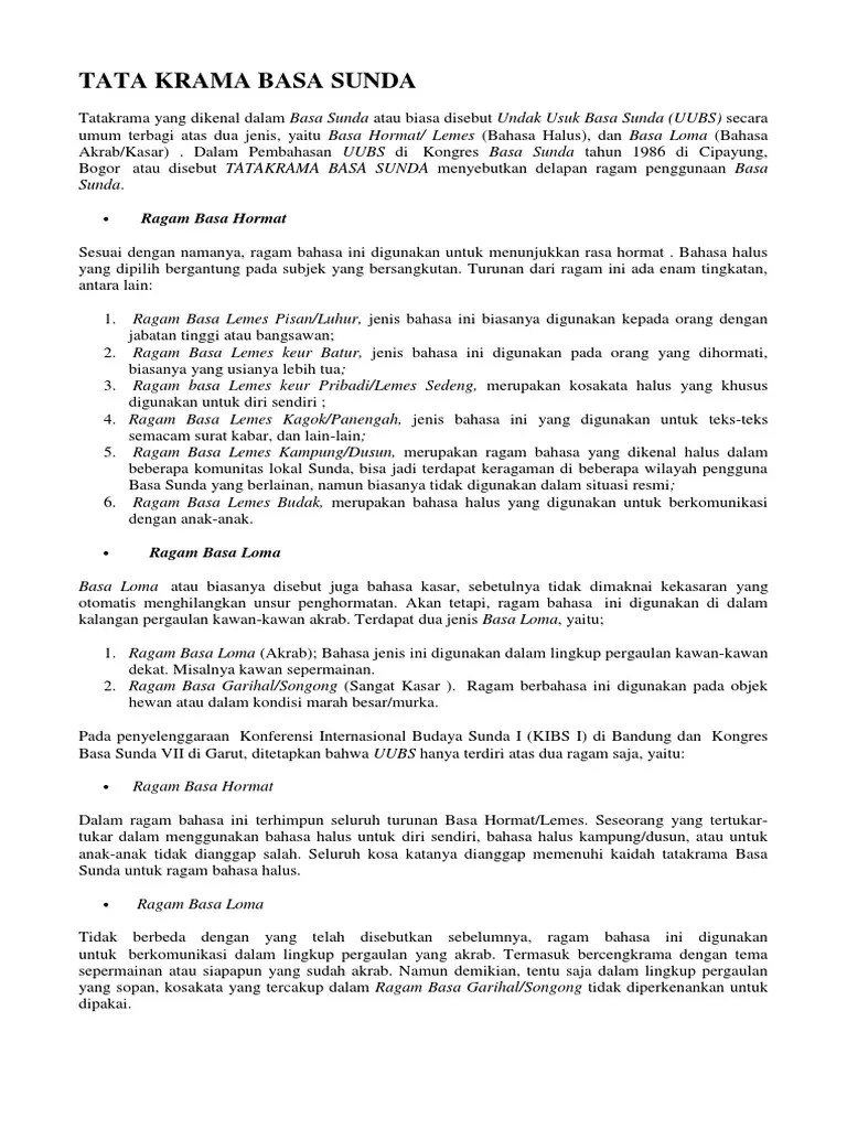 Contoh Bahasa Loma Dalam Bahasa Sunda - Nama Anggota Badan Dalam Basa Sunda Lemes Muhyidin Skm / Perbandingan contoh kalimat antara ragam basa hormat dan basa loma.